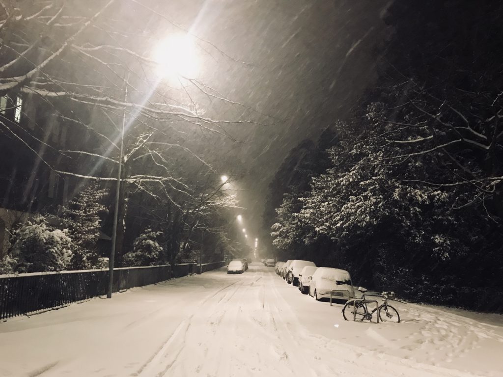 Sur les trottoirs, il devait bien y en avoir 10 centimètres. Cette belle neige avait une texture de meringue, légère, que mes pieds déplaçaient comme des lames de chasse-neige en version miniature.