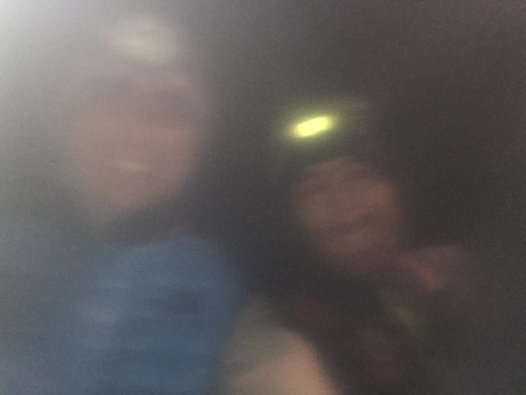 On a tenté de faire une photo-souvenir avant de filer. Pour changer, le compact n’a même pas daigné s’allumer. Le smartphone était mieux protégé du froid, et a bien voulu faire deux clichés flous. Craignant vraiment pour mes doigts, je n’ai pas insisté, j’ai remis mes gants mouillés et on est repartis ventre à terre.