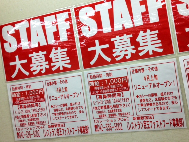On ne peut pas les manquer. Partout dans les magasins et restaurants, des posters offrant des emplois. Cela n’a rien d’étonnant : la population japonaise est en train de diminuer, et les jeunes gens qui auparavant faisaient des petits boulots pour financer en partie leurs études se font plus rares et ont l’embarras du choix. Pourquoi servir dans un restaurant ou être caissier dans une supérette quand d’autres opportunités, offrant meilleures conditions et meilleur salaire, se multiplient ?