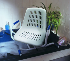 Chaque détail a son importance et le choix ne doit pas se faire à la légère, car selon le modèle, il sera très difficile d’adapter des moyens auxiliaires tels qu’une planche de bain, par exemple (ici Invacare modèle Marina) :