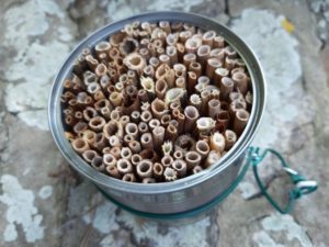 Que dire d’un hôtel à insectes… Un vrai spectacle printanier! Celui des osmies ou abeilles maçonnes, installant leur descendance dans les tiges creuses. Elle vont et viennent, chargées de pollen destinés à nourrir les futures larves et d’argile servant à cloisonner leur chambre. On se prend au jeu de l’observation à la fois distrayant et intriguant des allées et venues de ces abeilles sauvages qui se distinguent d’Apis mellifera (l’abeille domestique) par leur mode de vie paisible et solitaire. Osmia cornuta (l’osmie cornue) et Osmia bicornis (l’osmie rousse), ne piquent pas et sont donc les parfaites invitées pour le balcon des aînés.