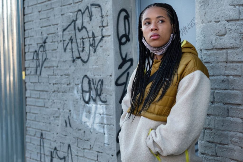 Dès les premiers plans, le port du masque s’impose comme une frontière qui nous sépare des expressions du visage de nos cinq héroïnes (un groupe de skateuses qui lutte contre la misogynie ambiante dans les rues new-yorkaises). Bien souvent, ledit masque est porté sous le menton par commodité personnelle – quand il ne « tombe » pas sous l’effet d’une prise de parole. Mais tout de même : sa simple présence fait entrer la fiction dans une nouvelle ère, si proche de notre quotidien que toute échappatoire semble hors d’atteinte. Après avoir abordé de front les répercussions du mouvement #MeToo en saison 1, Betty se confronte plus que jamais aux mutations du monde contemporain (aussi peu réjouissantes soient-elles).