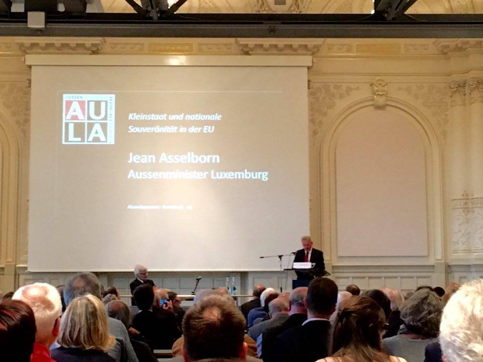 Jean Asselborn, ministre des Affaires étrangères du Luxembourg, était ce soir à l’Université de Berne pour présenter le point de vue des petits Etats de l’UE sur la situation politique actuelle au sein de celle-ci.
