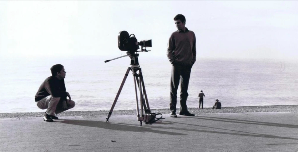 L’amour à la mer est le premier long métrage de Guy Gilles, dont le tournage a commencé alors que le jeune cinéaste, arrivé d’Alger cinq ans plus tôt, est à peine âgé d’une vingtaine d’années. Dans le film, Daniel rentre lui aussi d’Alger, en marin désœuvré. Il retrouve Geneviève qu’il a rencontrée à Deauville. Elle vit à Paris et travaille comme secrétaire dactylo. Lui est affecté au port militaire de Brest. Guy Gilles construit attentivement l’intrigue de son film sur l’écart géographique séparant ses deux protagonistes qui se rejoignent à la fin de l’été à Paris, le temps d’une permission, et se perdent dans l’hiver. Ce scénario, qui lui permet d’étoffer la complexité des personnages, se répercute aussi dans sa manière de représenter deux villes, Paris et Brest.