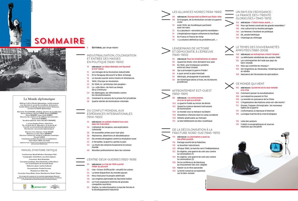 Avec les tensions que traverse l’Europe, l’histoire redevient une ligne de front sur laquelle s’exacerbent des tendances de plus en plus politisées. Il n’est ainsi pas anodin que Le Monde diplomatique publie maintenant un ouvrage retraçant l’évolution de l’humanité depuis l’époque de la révolution industrielle jusqu’à nos jours. Un livre qui se veut manuel d’histoire destiné aux étudiants et aux enseignants, et qui en porte d’ailleurs le nom, le Manuel d’histoire critique. Un contre-manuel en vérité, qui met de facto en exergue les idées reçues pour chaque période ou chaque sujet, et qui propose des explications « non alignées » avec les habituelles paraboles de la scolastique pédagogique des manuels d’histoire « d’ordinaire ». Un manuel qui ose des perspectives et des contextualisations, qui évoque les jeux d’influence et qui interpelle le lecteur en réveillant son sens critique, pour que « l’histoire ne soit pas le musée de l’ordre, mais la science du changement ». Un manuel qui s’inscrit parfaitement dans la philosophie de Serge Halimi, son directeur : « L’historien n’accepte aucun dogme, ne respecte aucun interdit, ne connaît pas de tabous ».