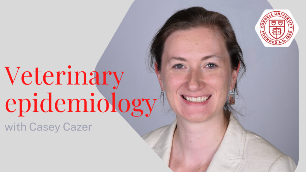Nous allons rencontrer le Dr Casey Cazer, Professeur assistant à l’université de Cornell, l’école vétérinaire la plus prestigieuse de la côte Est des Etats-Unis, afin qu’elle nous partage son parcours pour devenir vétérinaire spécialisé en médecine des population et sciences diagnostiques, ainsi que ces projets de recherche actuels au sujet du virus Covid-19 et de l’antibiorésistance en médecine vétérinaire.