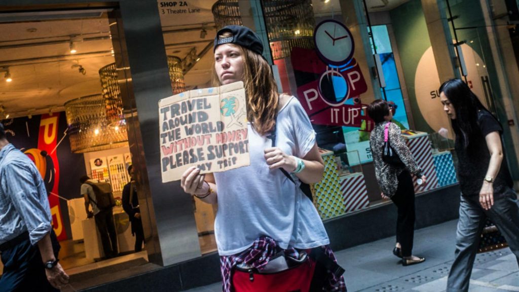 Je découvre alors qu’il est loin d’être le seul à pratiquer ce type de tourisme et que cela porte même un nom: le «begpacking», la contraction en anglais de begging (mendier) et backpack (sac au dos).
