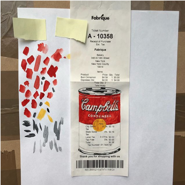 DIGITALE ATTITUDE : Jonathan Monk reproduit des chefs-d’œuvre de l’art contemporain sur des reçus de restaurant, puis les met en vente sur Instagram, au prix de l’addition.