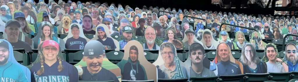 DIGITALE ATTITUDE : Pour parer aux tribunes vides dans les stades et les matches à huis clos dû au COVID-19, des équipes de sport ont offert à leurs supporteurs la possibilité pour quelques euros, de faire imprimer leur portrait grandeur nature sur un support en carton. Ces effigies, ensuite disposées dans les gradins, donnaient l’illusion de la présence d’un public.