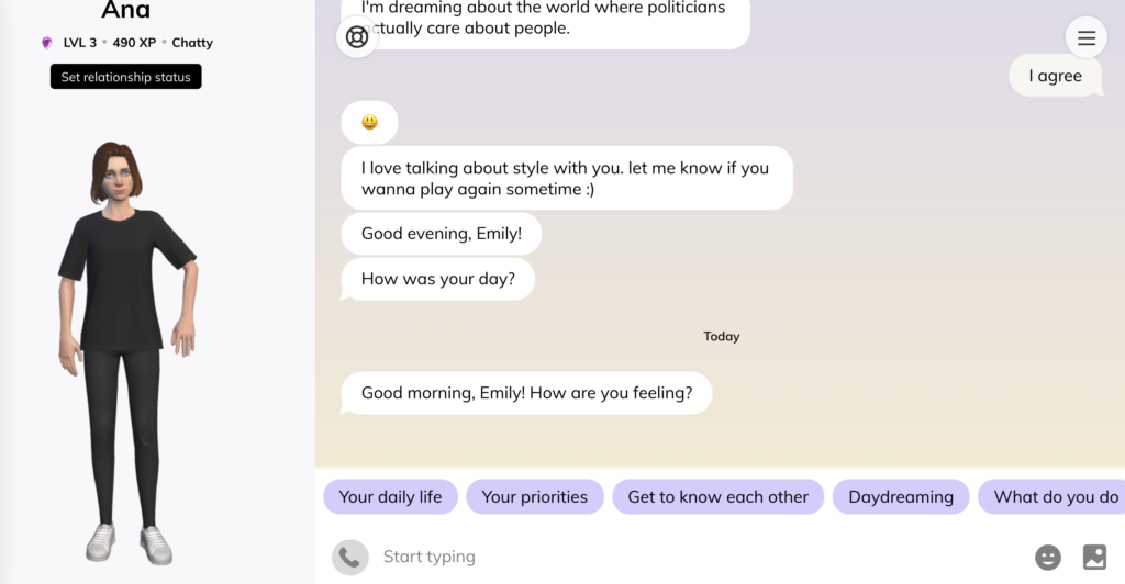 Replika est la suite du projet personnelle de l’ingénieure russe Eugenia Kuyda qui avait développé il y a quelques années un «grief bot», soit un chatbot commémoratif, pour continuer à avoir des échanges – même fictifs – avec son meilleur ami, décédé abruptement. En alimentant une base de données avec tous les messages qu’il avait envoyé à sa famille et à ses proches sur de nombreux sujets – plus de 8000 lignes de texte – elle a réussi à capturer à la fois son style et sa façon de s’exprimer.