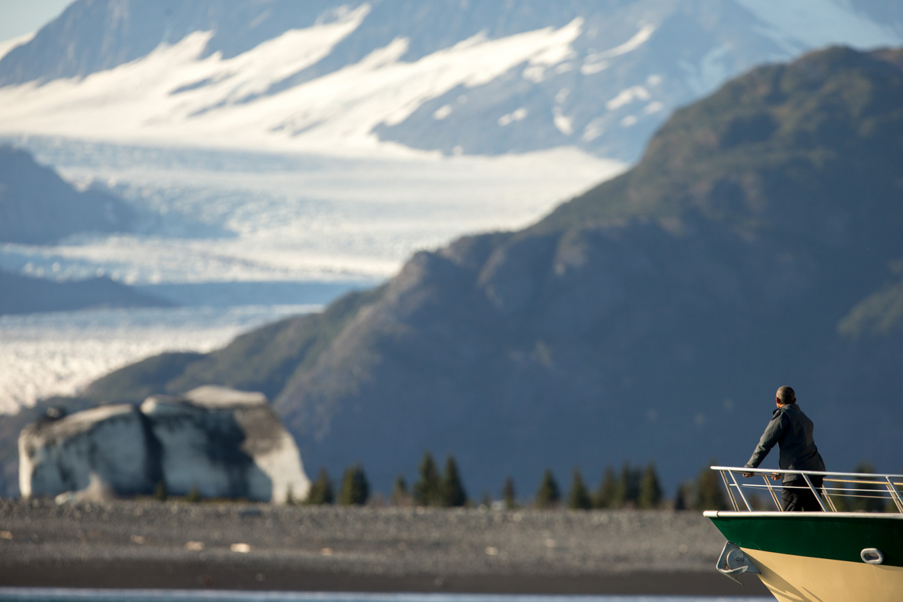 OBAMA 2 septembre 20152 septembre 2015 Stéphane Bussard Précédent Suivant Le président américain face au glacier Bear , qui a reculé de 2,9 kilomètres en un siècle. (AP Photo/Andrew Harnik)