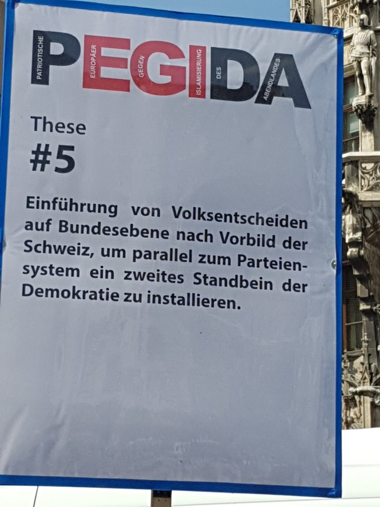 Il ne faisait pas bon voir PEGIDA sur la Marienplatz de Munich. Au nom d’une liberté d’expression dépouillée de son vrai sens, les autorités de la ville ont malheureusment permis à ces gens d’installer leur camionnette nauséabonde. Quelques-uns ont protesté. Ils avaient raison. Il ne faisait pas bon, non plus, d’entendre Frauke Petry à Interlaken. Quelques-uns ont protesté. Ils avaient raison. Raison de vouloir enfin « une Suisse [qui se veut] indépendante et neutre », indépendante de cette vermine qui sent la puanteur de l’extrême droite helvétique, allemande ou européenne.