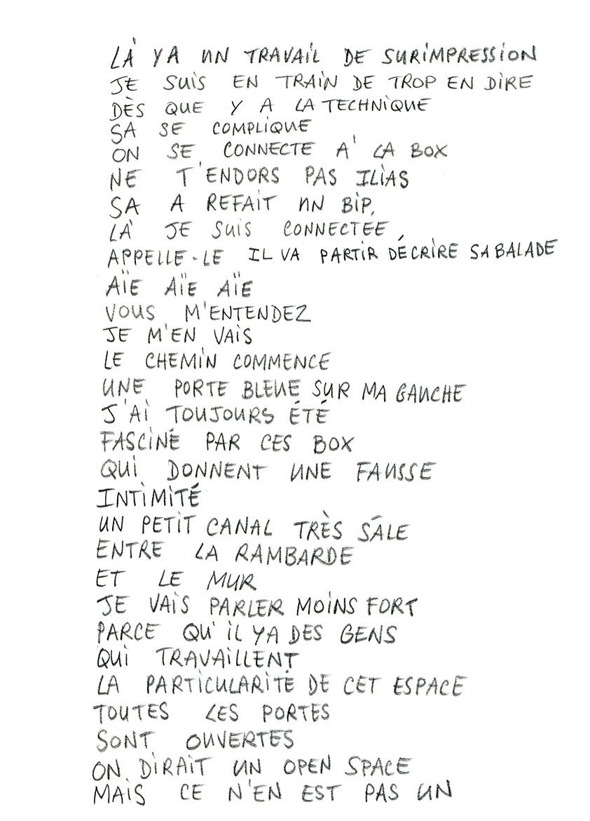 Cette proposition est une tentative de résistance. C’est le désir de faire exister un espace-temps hors du temps. Une invitation à savourer le temps mort, comme on savoure une plaque de chocolat.