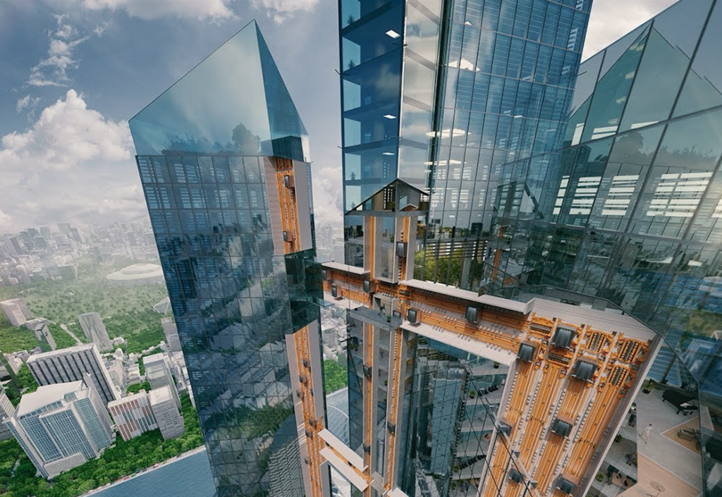 C’est un sujet tendance dans le milieu des bâtiments de grande taille: alors que la hauteur des bâtiments augmente et que la vie se déplace en direction du ciel, il nous faut pour l’instant toujours re-descendre au rez-de-chaussée pour passer d’un immeuble à l’autre. La solution pour parer à ce détour vertical: créer des ponts entre les immeubles, appelés en anglais “skybridges”. En plus de créer des liens entre les tours d’un centre-ville, ces ponts peuvent également représenter des opportunités de création d’espaces publiques dans les airs. Si ces ponts représentent bien des défis techniques (ingénierie, structure, etc.) ainsi qu’administratifs (accès public, servitudes de passage, etc.), ils paraissent particulièrement pertinent dans le contexte actuel d’ultra-urbanisation. Les ascenseurs MULTI, capables de se déplacer horizontalement, apparaissent comme la solution de premier choix à ce transport horizontal que font déjà naître les skybridges.