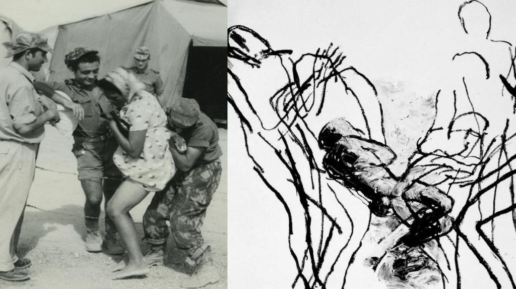 Illustration : Collage of “Soldats français harcelant une Algérienne” (1954-1962), Coll. Gilles Boëtsch. coll. Olivier Auger ; and cover of Saidiya V. Hartman, Scenes of Subjection – Terror, Slavery, and Self-Making in Nineteenth Century America, Oxford University Press, 1997.