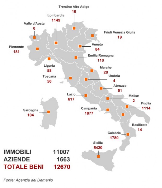En Italie, l'Agence Nationale pour l'Administration des Biens Confisqués à la Criminalité Organisée a été instaurée par le Décret-Loi no 4 du 4 février 2010 et converti en Loi no 50 du 31 Mars 2010. Cette agence règle l'utilisation, l'allocation et la réutilisation de tous les biens confisqués aux clans mafieux en Italie. Cette Agence est placée sous la Direction du Ministère de l'Intérieur Italien. A ce jour, 12'670 biens ont étés saisis pour une valeur de plusieurs dizaine de milliards d'euros. Certains ont étés réalloués, d'autres ont étés vendus (principalement des voitures et d'autres biens dont la vente est facilitée par la nature du bien) et d'autres encore attendent encore un repreneur. De cette Loi italienne, LIBERA, l'association italienne anti-mafia dirigée par Don Luigi Ciotti et FLARE, le réseau européen anti-mafia de la société civile, ont entrepris les démarches auprès de l'Union Européenne pour en faire une Directive européenne qui s'appliquerait du coup à tous les Etats Membres, ce qui devrait être chose fait l'année prochaine ou au pire en 2014. Cela dépendra de la crise…la belle affaire.
