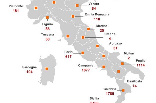 Mais le plus gros problème vient aujourd'hui des entreprises saisies. En effet, sur les 12'670 biens saisis, 1'663 sont des entreprises. Et Don Ciotti et Libera poussent en cette fin d'année un cri d'alarme: sur plus de 1'600 sociétés confisquées depuis 1982, seules 35 sont encore actives aujourd'hui. Et les grands quotidiens de la péninsule de titrer le "Waterloo des séquestres" et d'écrire noir sur blanc que lorsqu'une entreprise est en mains mafieuses, tous marche parfaitement bien et dès qu'elle se trouve saisie et placée sous un administrateur professionnel, elle dépérit et meurt rapidement. Parmi les "trésors" confisqués aux boss mafieux, on trouvera l'Hotel San Paolo de Via Messina à Palerme, l'entreprise agricole Suvignano Srl à Sienne en Toscane, de 713 hectares et disposant de 13 bâtiments, de 2000 têtes bovines et de 200 porcines, une oliveraie de 5 hectares et une réserve de chasse, le Château de Miasino à Novara (ou connu sous le nom de Villa Brette), ancienne propriété de la société DEUTZIA SRL appartenant au boss Pasquale Galasso, possèdant 30 pièces et un vaste parc ou encore la structure sanitaire Gruppo Villa Santa Teresa appartenant auparavant à l'ing Aiello, évalué à environ 800 millions d'euros et composée de 16 sociétés et divers bâtiments. Tous ces biens, saisis avant 2010, sont soit dans le rouge, soit encore en attente de mise en service (de la communauté). En Calabre, un des plus vastes parc d'éoliennes d'Europe est à l'arrêt, faute de repreneur (ce cas passant également par la Suisse pour les investissements).