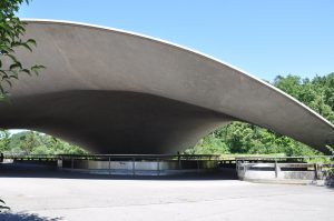 Au milieu de cette joyeuse indiscipline culturelle, émerge le sage Max Bill. Le zurichois, responsable d’un demi-secteur – celui d’ «Eduquer et créer» – se met au diapason de la consigne directoriale et livre un projet d’une grande rigueur, dont la poésie millimétrée est encore perceptible dans les bribes actuelles de sa déconstruction partielle – le théâtre de Vidy. Peintre, sculpteur, designer industriel, enseignant et architecte, Max Bill a ouvert la voie à une «tradition minimale» dont l’architecture suisse s’est faite l’écho dans les années nonante au point que sa renommée a largement dépassé depuis, les étroites frontières de son territoire. Par son «sens obstiné de l’économie et de la précision dans le projet, en partant des choix conceptuels jusqu’à l’exécution», il a contribué à remettre au premier plan une «banalité intelligente», sans rhétorique, ce que la modernité toute puissante d’alors avait peu à peu oublié de valoriser.