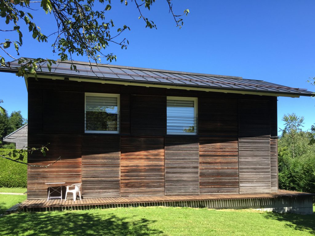 En vingt-cinq ans, le parcellaire des prés s’est densifié, enfermant le bel objet dans une anonyme barrière de bois imputrescible et de thuyas. Tout autour, ce qui avait été un versant agricole est aujourd’hui occupé par des immeubles de rapport dont la présence massive domine la fragile maison. Si les proportions et la matérialité n’ont rien perdu de leur caractère, le rapport au paysage a été profondément remanié, rendant plus difficilement lisibles les intentions conceptuelles d’origine. Il en va parfois ainsi de la marche du temps vis-à-vis du domaine de l’environnement bâti.