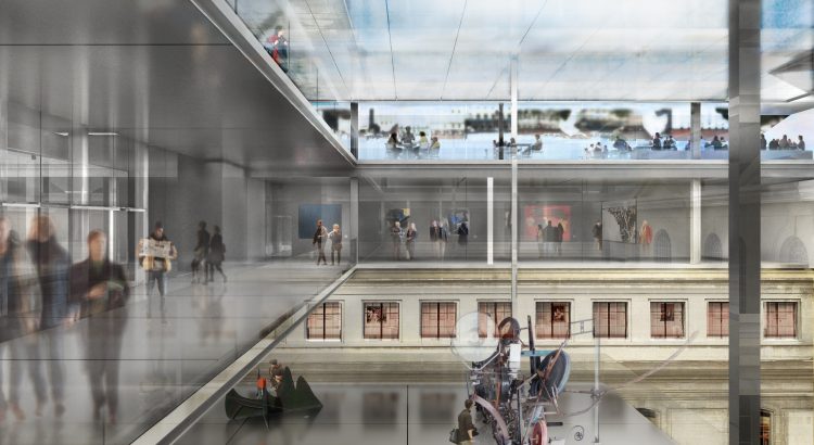 Car c’est bien à l’aune de cette relation très ténue entre une façade de pierre – qui deviendra un décor intérieur – et un assemblage de métal et de verre, que sera jugée la valeur du projet proposé. Au delà de toutes discussions stériles, l’attention devra être portée sur sa capacité à introduire les nouvelles structures dans cette situation de renversement, où chaque intention constructive devra véhiculer la pensée originelle d’une insertion délicate au coeur du monolithe existant. Une attitude claire de contraste entre l’ancien et le nouveau, dont on pourrait arguer qu’elle date un peu du point de vue de la tendance actuelle de la transformation patrimoniale. Cependant mise en dialogue avec un bâtiment qui lui-même avait « un train de retard », j’y vois une belle ironie que les critiques du prochain siècle prendront plaisir à dévoiler.