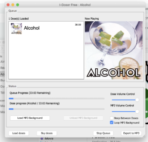 Comme je suis un journaliste sérieux, j’ai essayé; mais comme je ne voulais pas de problème avec mon employeur, j’ai testé l’ersatz numérique d’un produit qui me semblait à peu près légal: l’alcool. J’ai donc téléchargé l’application I-Doser (en démo gratuite, faut pas exagérer non plus), et je me suis injecté une dose de jaja par les oreilles – les deux captures d’écran ci-dessous vous montrent à quoi ressemblent l’interface et les messages publicitaires qui s’y rattachent:
