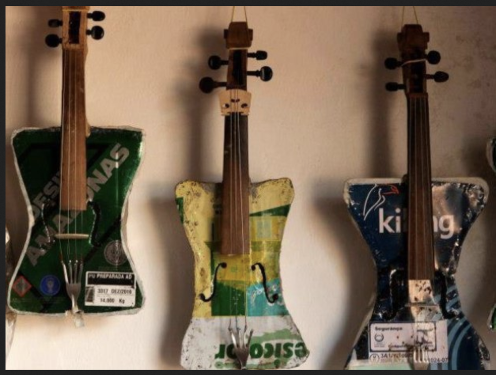 On peut enfin, très concrètement, recycler musicalement des objets bons pour la poubelle même si ceux-ci, a priori, étaient dépourvus depuis toujours de tout potentiel musical. En bon parler romand, on dira ici qu’il s’agit de faire du son avec du cheni. Le steelpan des Caraïbes, c’est la conversion de vieux bidons de pétrole en percussions mélodiques. En Egypte, le musicien Shady Rabab a lancé le projet Garbage Music, qui propose à des gamins de construire des instruments à partir des rebuts de déchetterie – une idée par ailleurs soutenue par le Programme pour l’environnement des Nations-Unies.