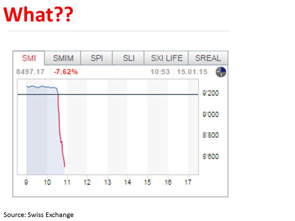 La BNS supprime le taux plancher à 1fr 20. Le franc suisse est arrivé quasiment à parité avec l'Euro, le SMI est en chute libre. Personne ne sait si c'est temporaire et ce qui va se passer dans les prochaines heures et les prochains jours… mais on pouvait s'attendre à une réaction violente et inquiète!