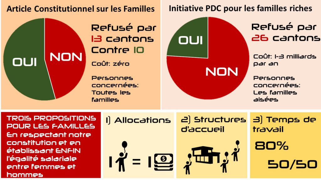 55% de soutien et 10 cantons, c’était extrêmement peu, alors que l’article constitutionnel n’était dans le fond qu’une sorte de déclaration d’intention qui ne coûtait rien, et qui concernait tout le monde. Finalement, que 30% de plus de la population disent non lorsqu’on vote sur un thème identique, mais que cette fois-ci le texte est très mal ciblé et coûterait beaucoup aux familles de la classe moyenne, c’est normal.