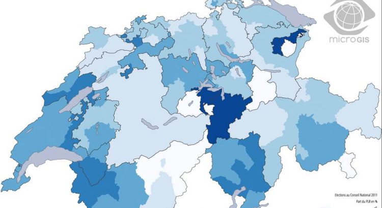Voici une carte qui représente les forces du PLR (foncé = plus fort)