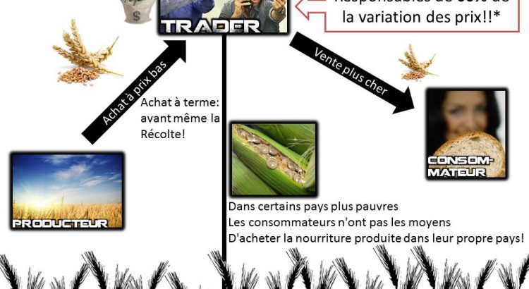 Or, sur les marchés internationaux, les producteurs sont souvent des personnes particulièrement pauvres, ou alors des entreprises qui exploitent de la main d’œuvre sous-payée dans des pays offrant des conditions de travail difficiles. Les consommateurs, eux, sont techniquement partout. Mais si les prix flambent, dans certains pays, ceux-ci n’ont plus les moyens d’acheter les produits au prix que les traders demandent. C’est là le paradoxe : des personnes souffrent de malnutrition, de sous-alimentation voire de famine à côté des champs qu’ils ont exploités pour nourrir les consommateurs qui ont eu les moyens de financer les traders.