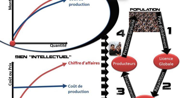 Par contre, pour une production intellectuelle, comme un morceau de musique, ou un épisode de série, vous avez un coût fixe de production qui est très élevé. C’est très cher de faire une série télévisuelle. Mais ce coût est le même, quel que soit le nombre de spectateurs : une fois que l’idée a été générée, qu’un film a été produit, le visionnage du film ne coûte quasiment rien. Pourtant, le modèle actuel fait qu’un film qui a du succès recevra beaucoup de recettes, alors que celui qui en a moins ne pourra pas couvrir ses coûts. C’est pourquoi beaucoup d’artistes n’arrivent pas à joindre les deux bouts : les recettes sont concentrées sur une minorité des productions. Pourtant l’existence de la diversité est importante et garante du développement de nouvelles productions à succès.